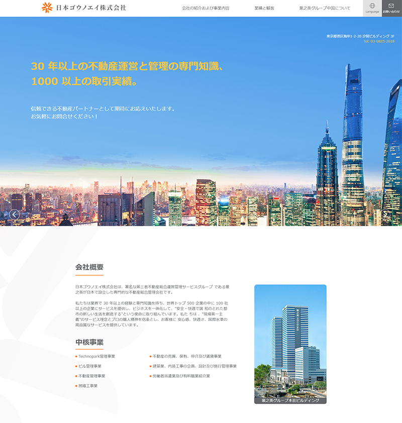 豪之英集團(tuán)是大連思祿信息多年合作客戶,此次日文站是為日本分公司拓展業(yè)務(wù)使用,設(shè)計(jì)高標(biāo)準(zhǔn),技術(shù)高起點(diǎn)。在此預(yù)祝豪之英集團(tuán)日本分公司大展宏圖。